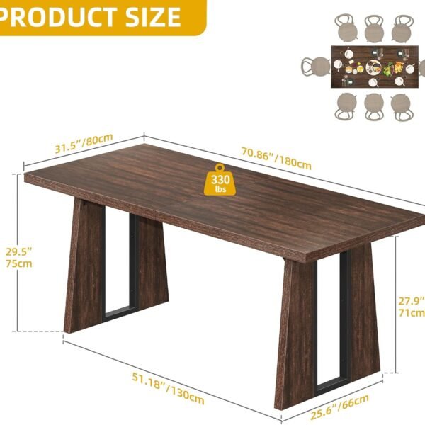 Farmhouse Dining Table for 6-8, 70.9 Inch Rectangular Wood Kitchen Table with Heavy Duty Metal Legs, Industrial Dinner Table for Dining Room, Living Room, Brown