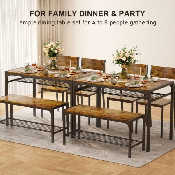 Industrial Dining Table For 6~8 People, 78.7″ Long Kitchen Table, Wood Dining Table, Kitchen & Dining Room Table, Rectangle Dining Room Table For 6 Ideal For Dinner Or Meetings -Retro Brown