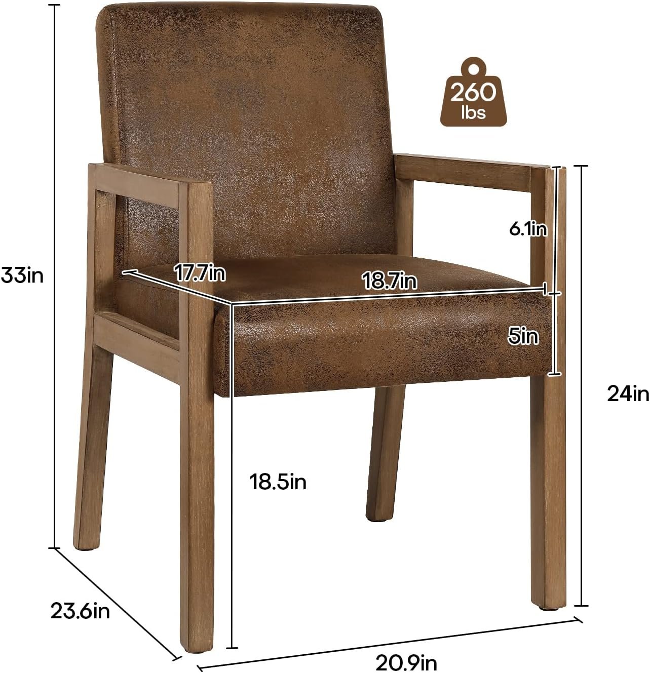 - 【Versatile to Use】: With its generous seat, splayed legs, and retro aged brown finish, this upholstered dining chair exudes a mid-century modern charm that complements various home styles. This dining chairs with arms can serve as a dining chair, desk chair, or accent piece, suitable for use in the living room, guest room, bedroom, office, waiting room, garden, or patio.