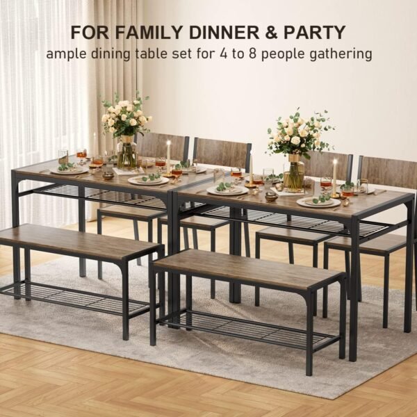 - [DUSTRIAL DESIGN & EASY ASSEMBLY]: Classic black and chic rustic brown wood grain with a sleek retro twist will definitely match your home dining room style. And it is easy to assemble this industrial 70-inch table, all labeled pieces and tools are included, strictly following the directions, you will finish within 30mins.