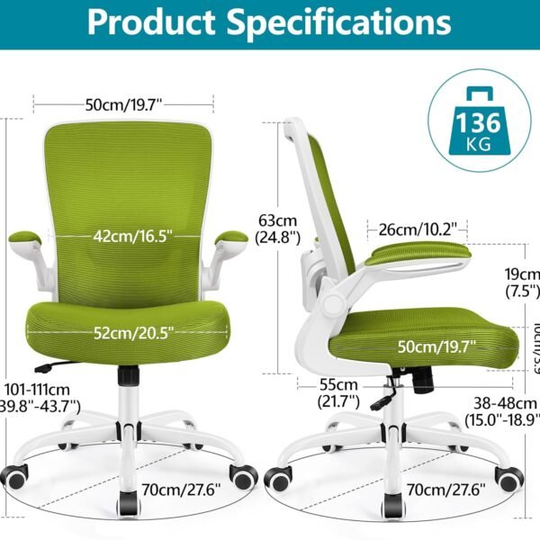 Office Chair, Ergonomic Desk Chair Breathable Mesh Chairs Adjustable High Back Lumbar Support Flip-up Armrests, Executive Rolling Swivel Comfy Computer Chairs Home Office Avocado Green